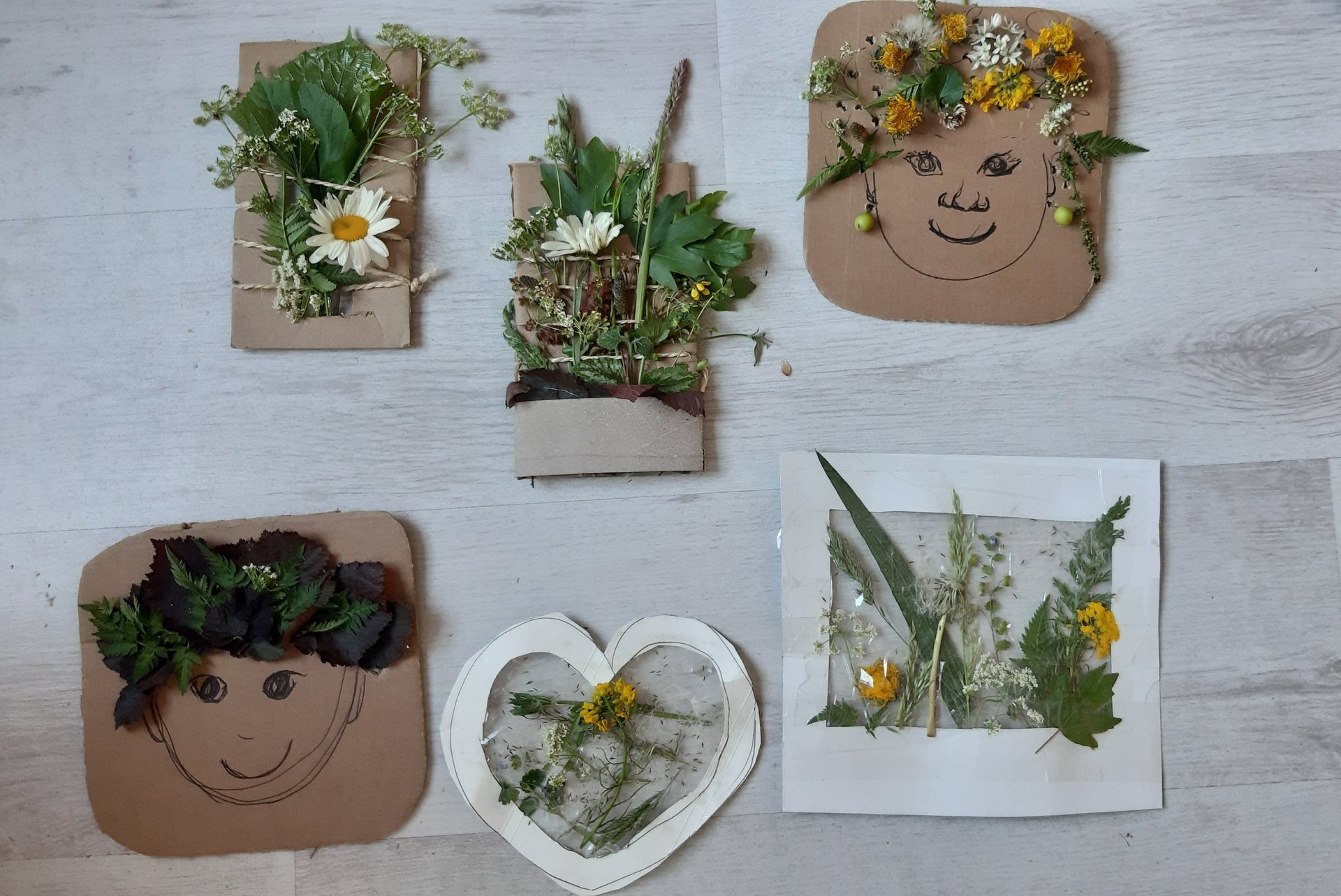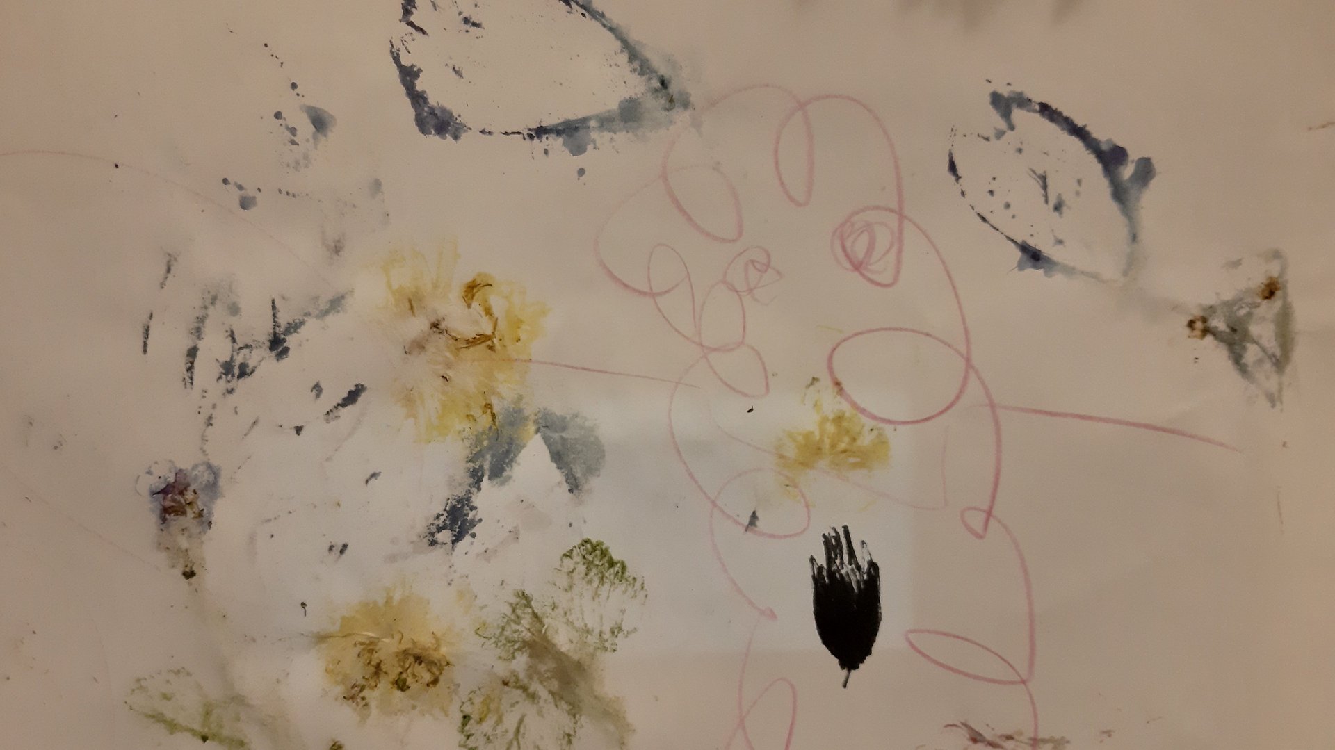 Wij hebben Pintrest er flink op nagekeken en zijn lekker bloementjes gaan plukken. Hier hebben we schilderijen mee gemaakt op verschillende wijzen. Schilderijen zijn het natuurlijk niet, want er is bij de meesten weinig verf aan te pas gekomen, maar het zijn leuke werkjes geworden terwijl we hebben kunnen samenwerken (blaadje goed op elkaar houden), verschillende materialen samen hebben kunnen gebruiken om iets vorm te geven, Lina heeft kunnen oefenen met een hamer en we hebben kunnen uitzoeken welke planten wel of niet goed werkt en waarom niet (bijvoorbeeld te stug of te nat).