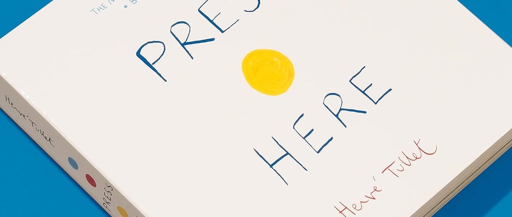 Dit boek, geschreven door Herve Tullet, gaat over een stip die in verschillende kleuren en vormen verandert nadat je de opdracht uitvoert die op de pagina staat. Zo staat bijvoorbeeld op pagina 1 de instructie: Press here and turn the page. De kinderen zijn erg nieuwsgierig wat er gebeurd als je de opdracht uitvoert en het zorgt ervoor dat ze actief betrokken zijn bij het verhaal. Soms moet je het boek draaien of zelfs er mee schudden. Dit aspect van het boek stimuleert niet alleen bij de verbeelding maar helpt ook bij het ontwikkelen van motorische vaardigheden en begrip van oorzaak en gevolg.