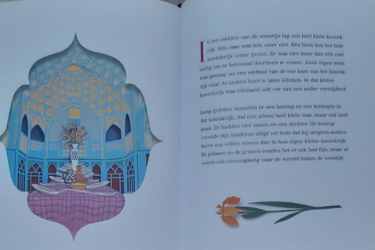 De schrijver heeft oude verhalen, die mogelijk met een omweg naar het Midden-Oosten zijn gekomen, een schrift gegeven. Dat vind ik het mooie, dat Rodaan Al Galidi ook benoemd niet de bedenker te zijn van de verhalen maar de verzamelaar. Wanneer ik op Bol.com de link aanmaak naar het boek, lees ik een stukje van Rodaans bijzondere verhaal. Deze meneer is zelf in een AZC in Nederland gekomen en heeft zich in de afgelopen jaren als Nederlandse literatuurschrijver weten te ontwikkelen! Een mooi, pijnlijk verhaal lees je in dit artikel door Brainwash. Ik vind dat de beladenheid uit dit stuk niet terug is te lezen in de korte en toch wel positief ingestoken verhalen in het Arabische sprookjes-boek.