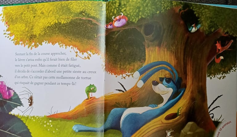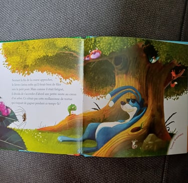 Voor elk ander dat graag Frans leest, is dit een leuke optie (ook in het Nederlands verkrijgbaar). Het verhaal kennen de meesten wel, hoe de schildpad van de haas wint. Welk gesprek koppel jij daaraan?