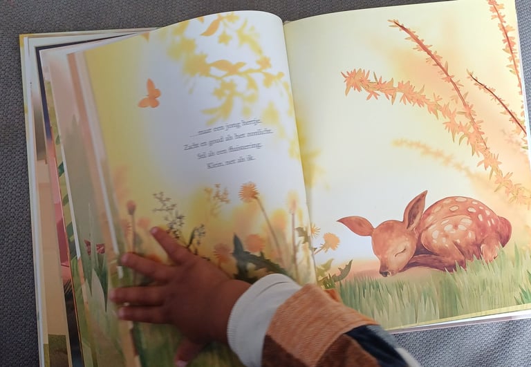 Zowel Lina als Malik pakt het boek regelmatig en kan dan lekker zitten bladeren. De pagina's voelen fijn aan, met hun stevige structuur en zachte coating.