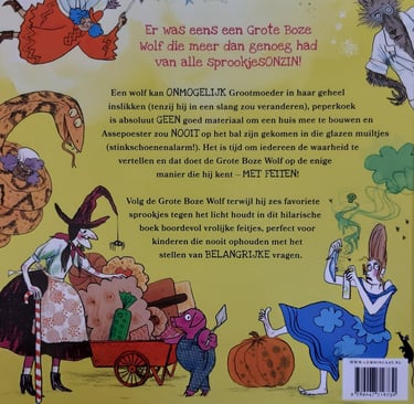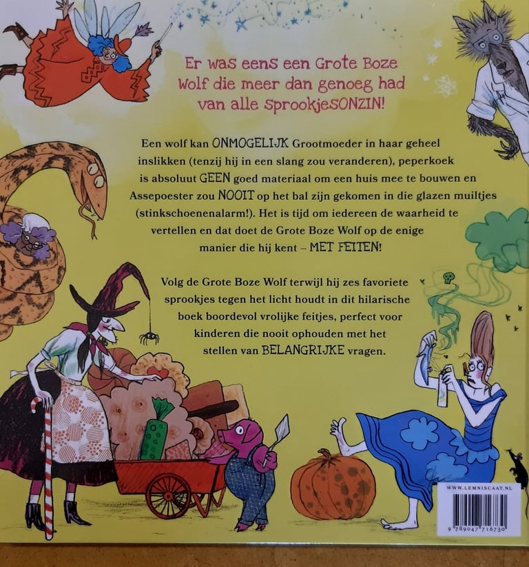 Duidelijk geschreven vanuit het personage van de Boze Wolf, die wat geagiteerd is over de inhoud van sprookjes. Natuurlijk werden en worden sprookjes doorverteld om een moraal mee te geven maar in dit boek worden de verhalen even de kop ingeslagen. Ook geeft de Boze Wolf een vervolg aan het "leven nog lang en gelukkig", waarin de wonderbonen van Jaap gewoon schapenkeutels waren en zijn moeder hem voor straf het kasteel van de vrouw van de reus laat schoonmaken. Hans en grietje organiseren survivalkampen waarin minder kinderen de weg terug naar het kamp vinden dan er mee hebben gedaan.