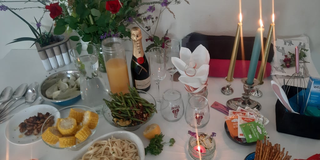 David houdt dus niet van verjaardagen. Hij houdt er wel van als een koning behandeld te worden en gemasseerd te worden, zeker aan zijn voeten die van het vele staan gewoon moe zijn. Taart en zoetigheid is mijn ding, niet de zijne maar zijn hapjes passen weer niet in mijn kunde.
