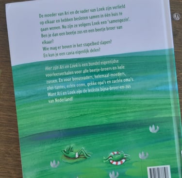 In dit boekje lees je over de avonturen die Loek en Ari samen beleven. Het zijn twee kinderen in een samengesteld gezin met elk zijn eigen gewoonten. De ouders hebben een liefdevolle relatie en tonen zowel respect als verwondering over elkaars gebruiken. Dit nodigt niet alleen uit tot gesprek, tijdens of na het lezen, maar biedt ook een voorbeeld in hoe je naar elkaar kunt luisteren. Soms doen we het op mijn manier, en soms op de jouwe. We kunnen wat van elkaar leren, we blijven met elkaar praten en elkaar respecteren en bovenal: we hebben plezier met elkaar.