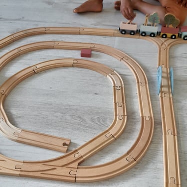 Natuurlijk moet speelgoed leuk blijven. 'Te veel' is nooit goed en het moet overzichtelijk blijven. Voor jou en voor de kinderen. Deze houten treinbaan van Little Dutch redt mij af en toe van overspanning voor het avondeten.